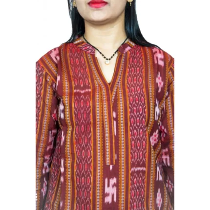 Generic Women’s Sambalpuri Certified Handloom Pure Cotton Straight Kurti (Maroon)