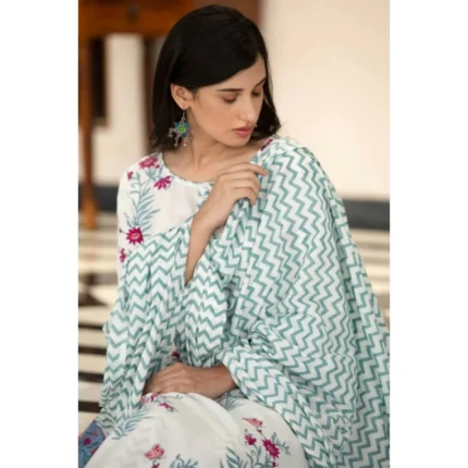 Generic Women’s Casual Sleeveless Embroidered Cotton Kurti Set (White)