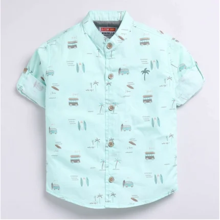 Generic Boy’s Cotton Blend Printed Short Sleeve Shirt (Green)
