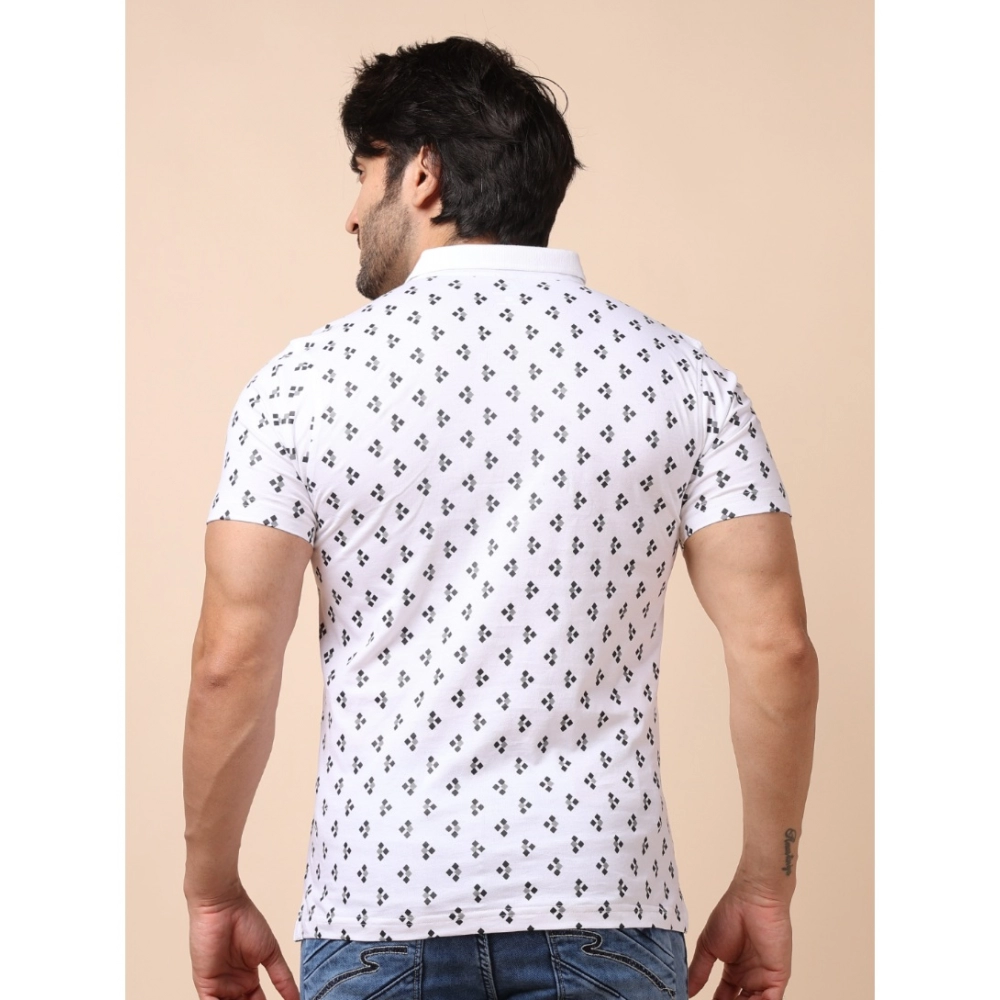 Generic Men’s Casual Cotton Printed Polo Neck Half Sleeve T-Shirt (White)