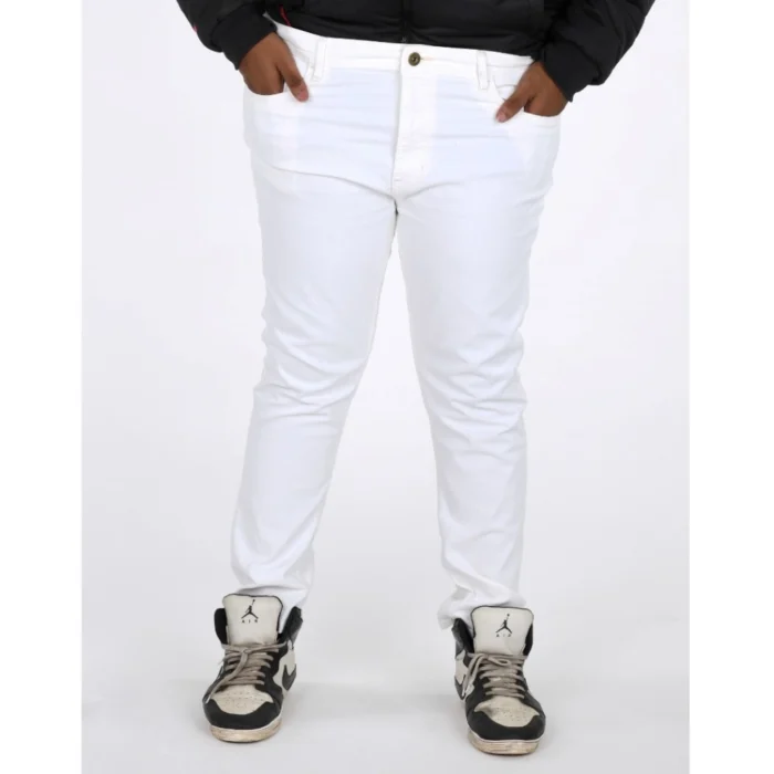 Generic Men’s Cotton Blended Solid Plus Size Jeans (White)