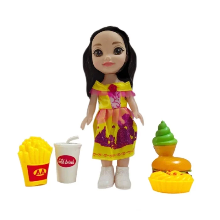 Generic Plastic Doll Set With Fast Food Accessories (Yellow)