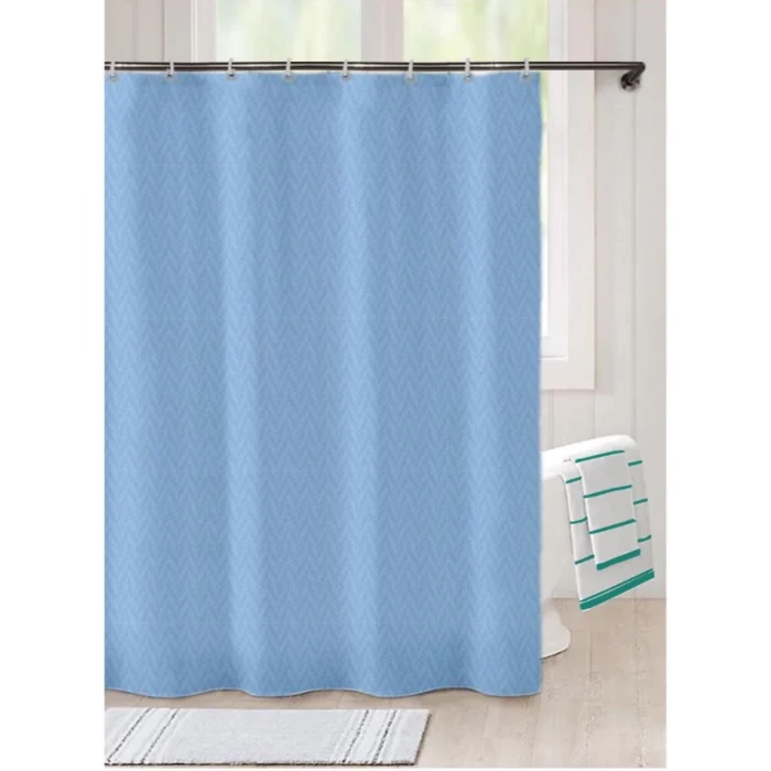 Generic Waves Polyester Plain Shower Curtains with Plastic Eyelets (Light Blue)