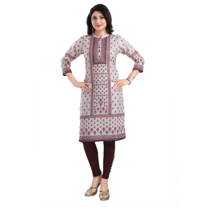 Generic Women’s 3/4th Sleeve Cotton Blend Tunic Long Kurti (Beige)