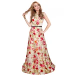 Generic Women’s Crepe Printed Half Sleeves Full Length Gown(Multi)
