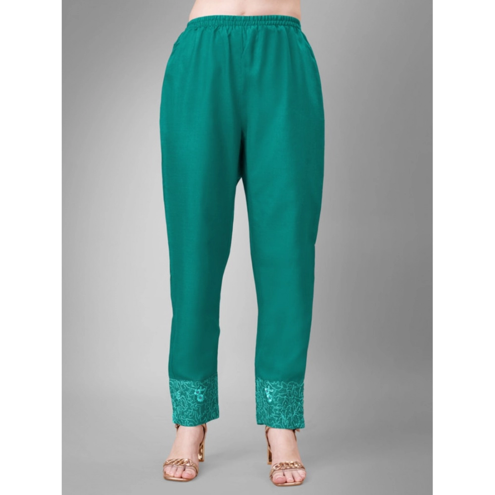 Generic Women’s Casual 3-4 th Sleeve Embroidery Cotton Kurti Pant Dupatta Set (Rama)