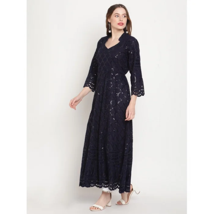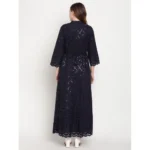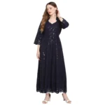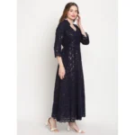 Generic Women’s Casual 3/4th Sleeve Embroidered Cotton Kurti (Navy Blue)