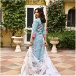 Generic Women’s Casual 3/4th Sleeve Floral Print Cotton Kurti Set (Skyblue)