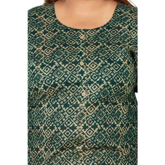 Generic Women’s Casual 3/4th Sleeve Golden Foil Printed Capsule Cotton Straight Kurti (Dark Green)