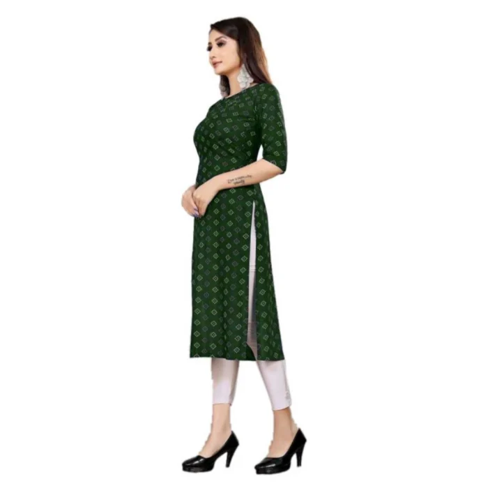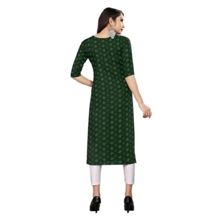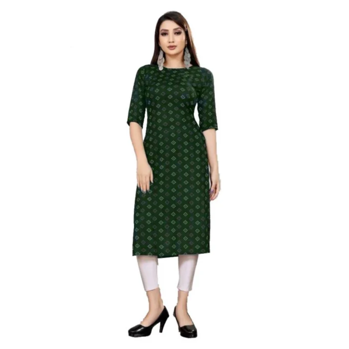 Generic Women’s Casual 3/4th Sleeve Printed Cotton Blend Kurti (Green)