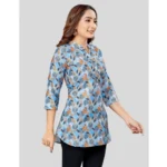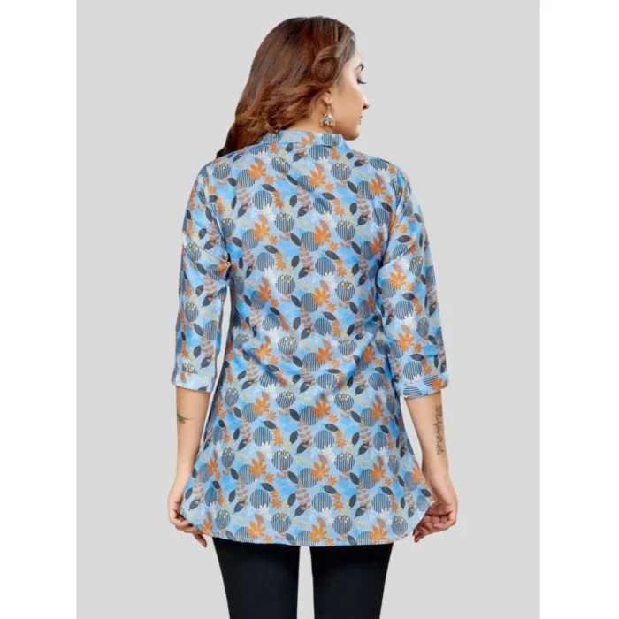 Generic Women’s Quarter Sleeve Faux Crepe Printed Short Kurti Tunic Top (Color:Multicolor)