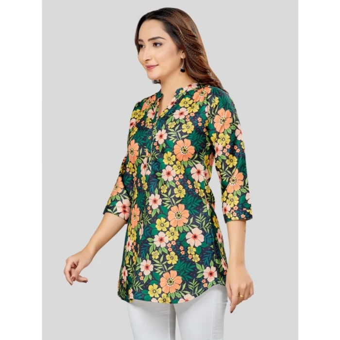 Generic Women’s Quarter Sleeve Faux Crepe Printed Short Kurti Tunic Top (Color:Multicolor)