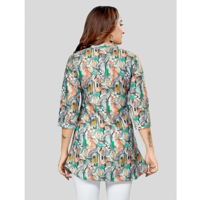 Generic Women’s Quarter Sleeve Faux Crepe Printed Short Kurti Tunic Top (Color:White)