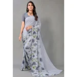Generic Women’s Georgette Printed Saree With Unstitched Blouse (Grey)