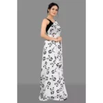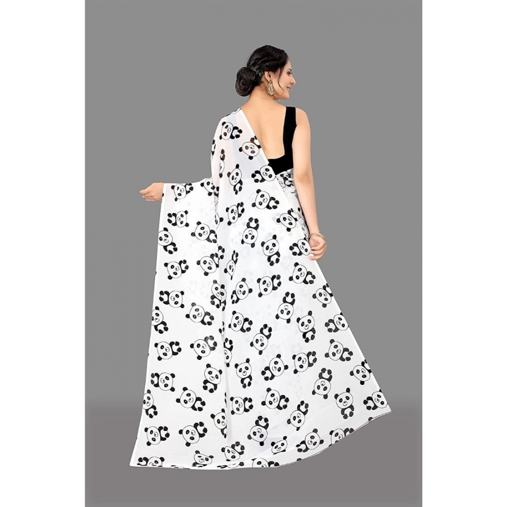 Generic Women’s Georgette Printed Saree With Unstitched Blouse (White)