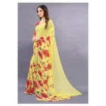 Generic Women’s Georgette Printed Saree With Unstitched Blouse (Yellow)