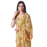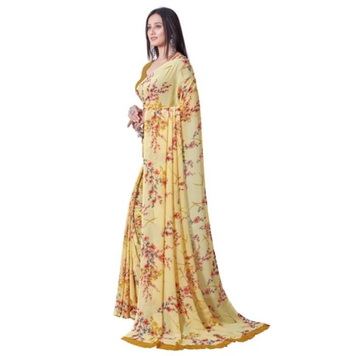 Generic Women’s Georgette Printed Saree With Unstitched Blouse (Yellow)