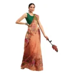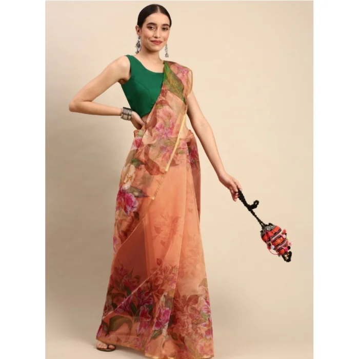 Generic Women’s Organza Printed Saree With Unstitched Blouse 5.5Mtr (Peach)