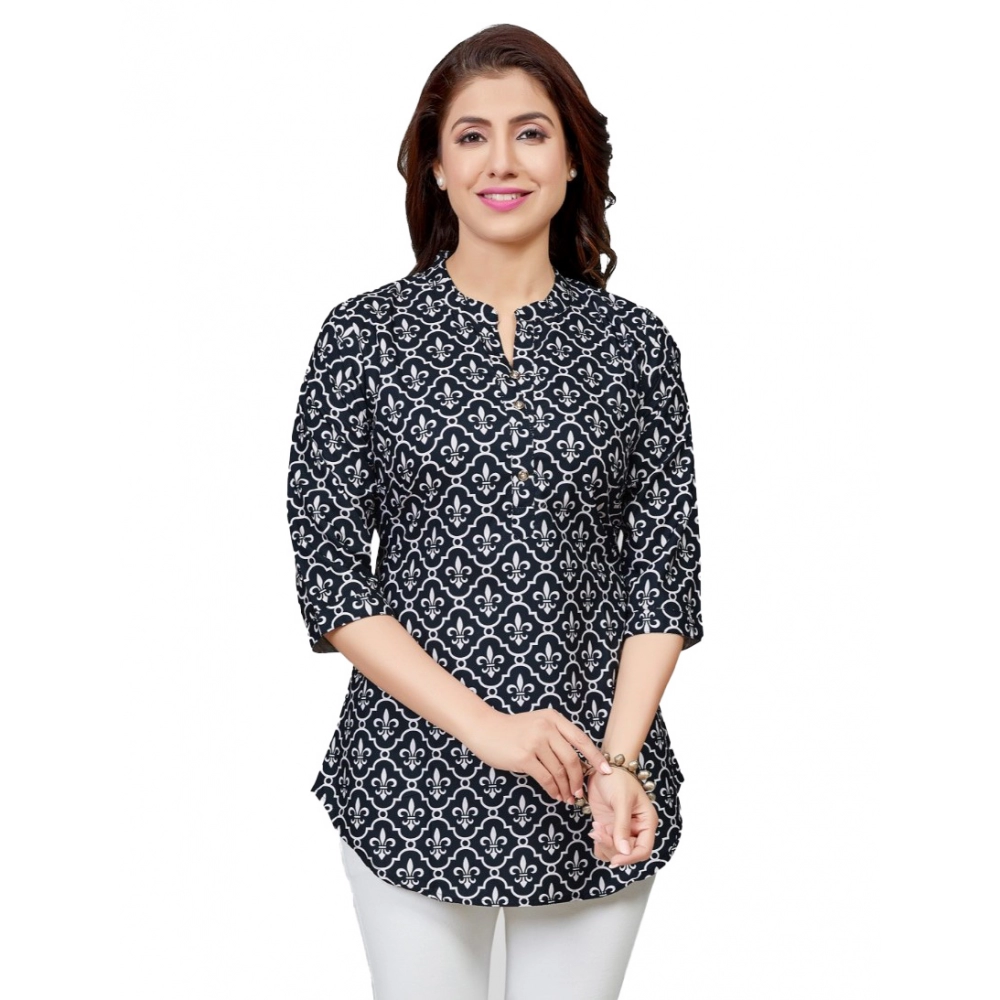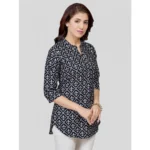 Generic Women’s Quarter Sleeve Faux Crepe Printed Short Kurti Tunic Top (Color:Multicolor)
