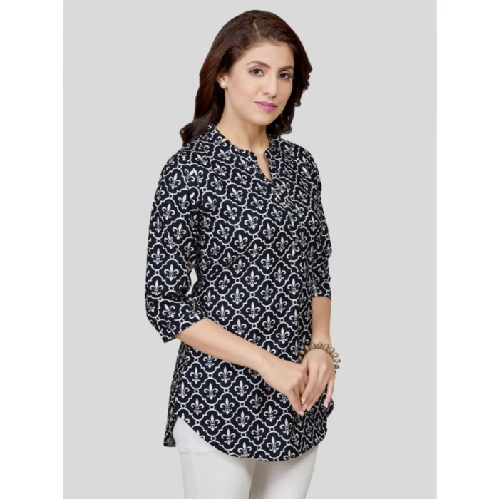 Generic Women’s Poly Crepe Mandarin Collar 3/4 Sleeves Short Top (Black)