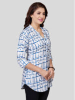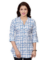 Women’s Poly Crepe Mandarin Collar 3/4 Sleeves Short Top, Color: White, Material: Poly Crepe, Size: L, Pattern: Printed, Neck Type: Mandarin Collar, Sleeve Type: 3/4 Sleeves, Length Type: Short, Disclaimer: The color of actual product may vary slightly from the images provided due to photographic lighting conditions and difference in screen resolutions. |