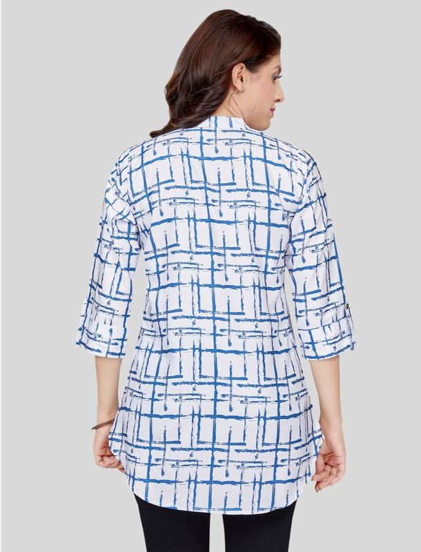 Women’s Poly Crepe Mandarin Collar 3/4 Sleeves Short Top, Color: White, Material: Poly Crepe, Size: L, Pattern: Printed, Neck Type: Mandarin Collar, Sleeve Type: 3/4 Sleeves, Length Type: Short, Disclaimer: The color of actual product may vary slightly from the images provided due to photographic lighting conditions and difference in screen resolutions. |