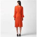 Generic Women’s Polyester Ruffled Close Neck Long Sleeves Dress (Orange)