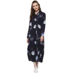 Women’s Rayon Floral Collar Neck Long Sleeves Dress
