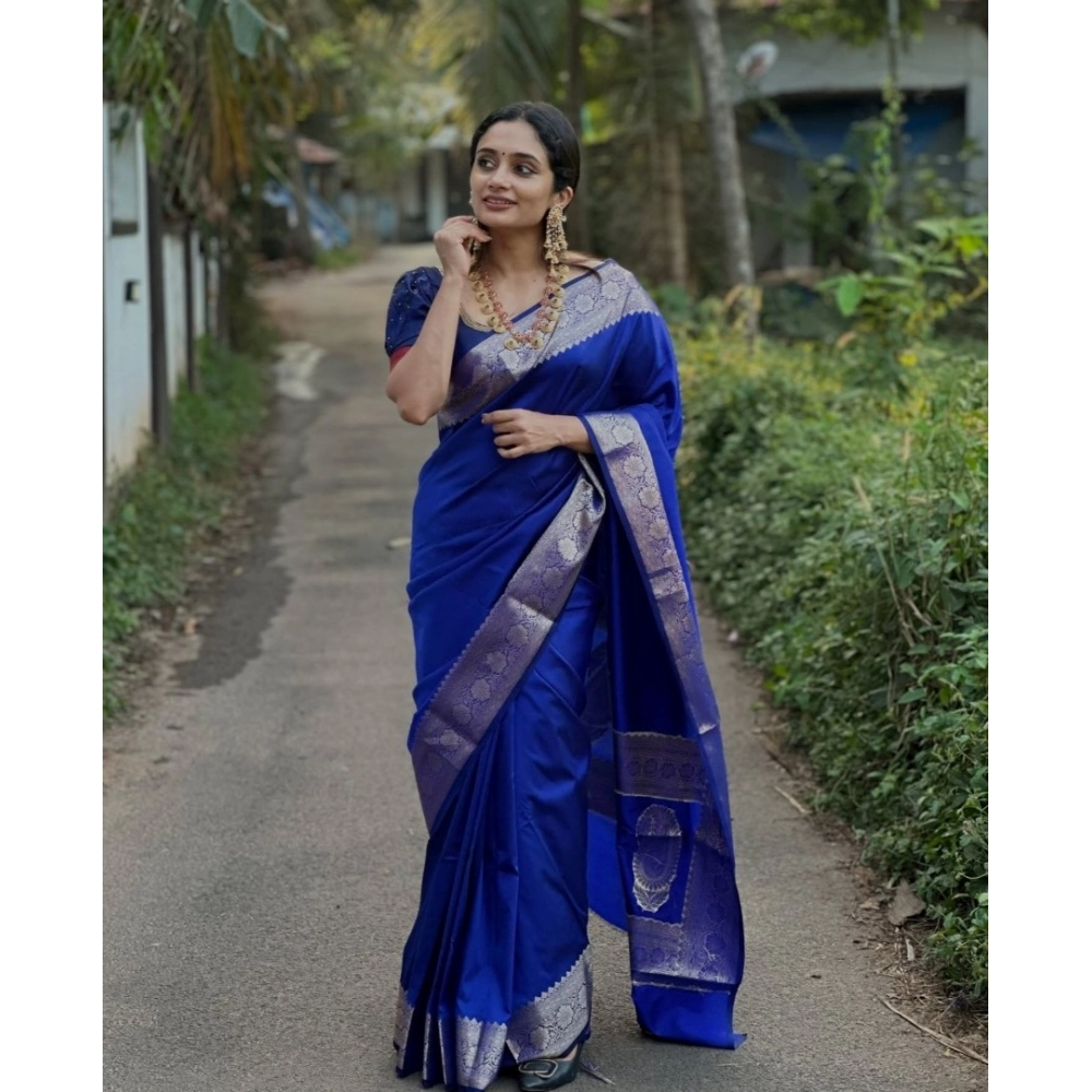 Generic Women’s Silk Woven Kanjivaram Saree With Unstitched Blouse (5.5Mtr, Blue)