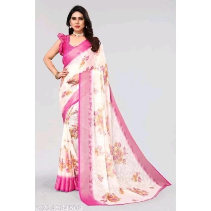 Be the first to review “Generic Women’s Viscose Rayon Printed Saree With Unstitched Blouse (Pink)”