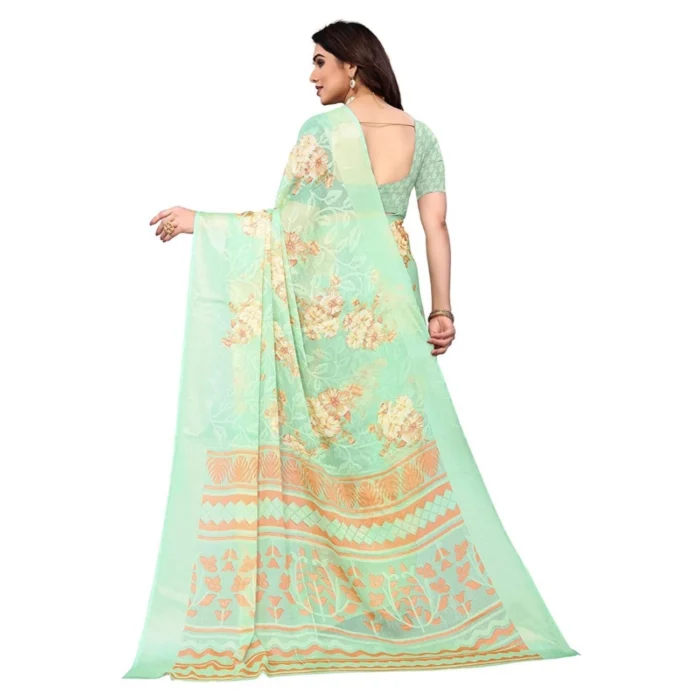 Generic Women’s Viscose Rayon Printed Saree With Unstitched Blouse (Pista)