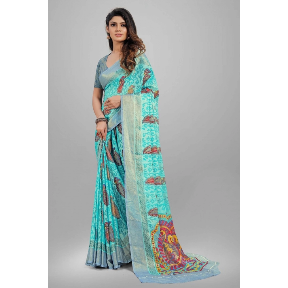 Generic Women’s Viscose Rayon Printed Saree With Unstitched Blouse (Sky Blue)