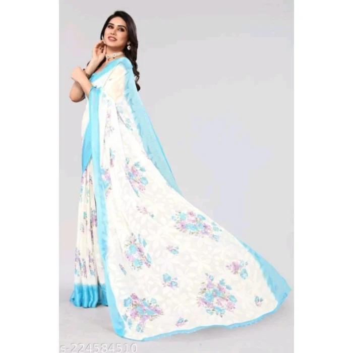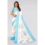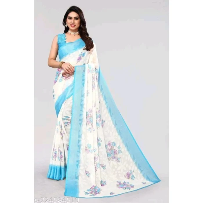 Generic Women’s Viscose Rayon Printed Saree With Unstitched Blouse (Sky Blue)
