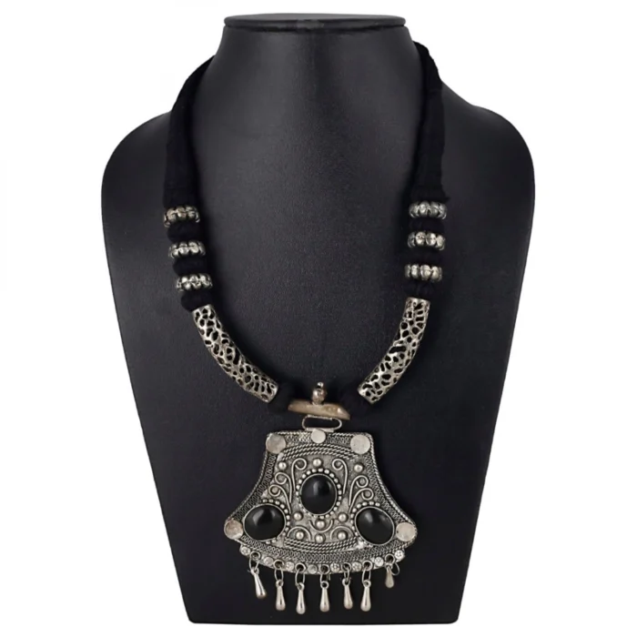 Be the first to review “High Finished Black Beads and Oxidized Silver Pendant Designer Necklace”