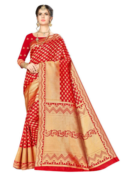 Women’s Banarasi silk Saree with Blouse (Red, 5-6mtr)
